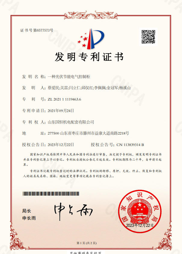 山東國恒機電配套有限公司簡      介 山東國恒機電配套有限公司是一家集新能源、高科技、智能化生產研發(fā)、制造、銷售為一體的綜合性現(xiàn)代化高新技術企業(yè),公司座落在魯班故里、墨子之鄉(xiāng)滕州,公司始建于2005年,注冊資本1億元,擁有各類中、高級專業(yè)技術人員100余名。主營業(yè)務涉及高科技智能電力裝備、新能源儲備輸送,220kv及以下輸變電工程勘察設計、制造、銷售、安裝、售電和智能充電樁能效運維,并從事生產制造交直流充電樁設備、成套開關設備、各型號高低壓開關柜、箱式變電站等電氣設備,是棗莊地區(qū)唯一一家國資入股的新能源高端品牌企業(yè)。公司擁有獨立… 【查看更多】